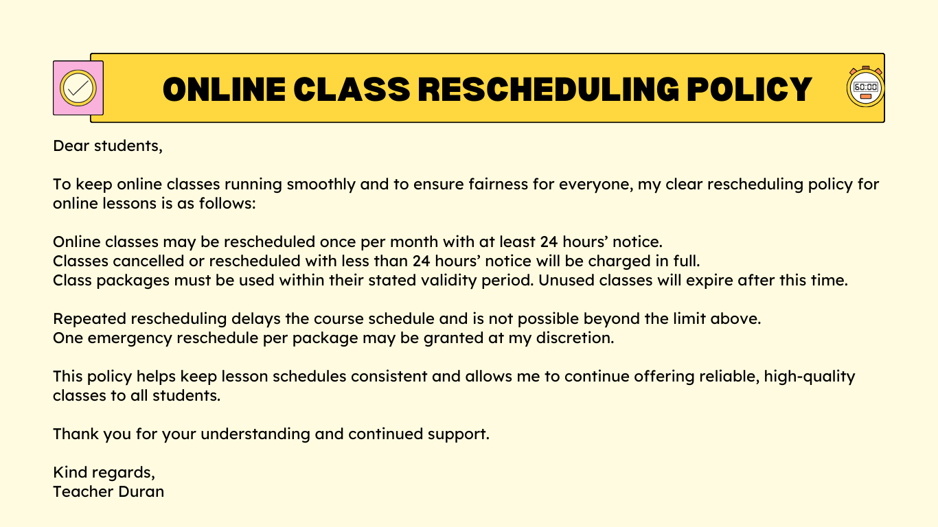 CLASS TYPE | 1-1 Classes | Suitable for CEFR levels: A1 -C2 |
